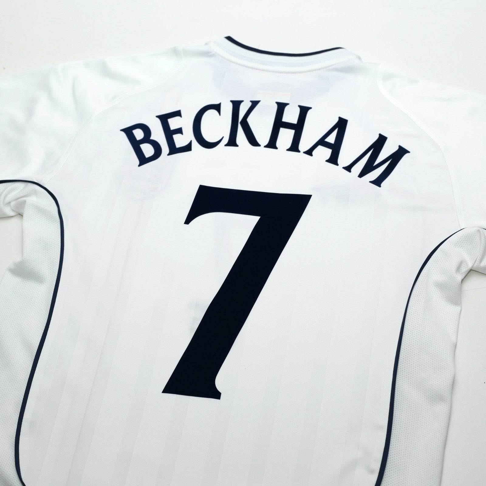 FEATURES - Official Umbro flock print for England Captain David Beckham #7 and official Greece match embroidery detail)