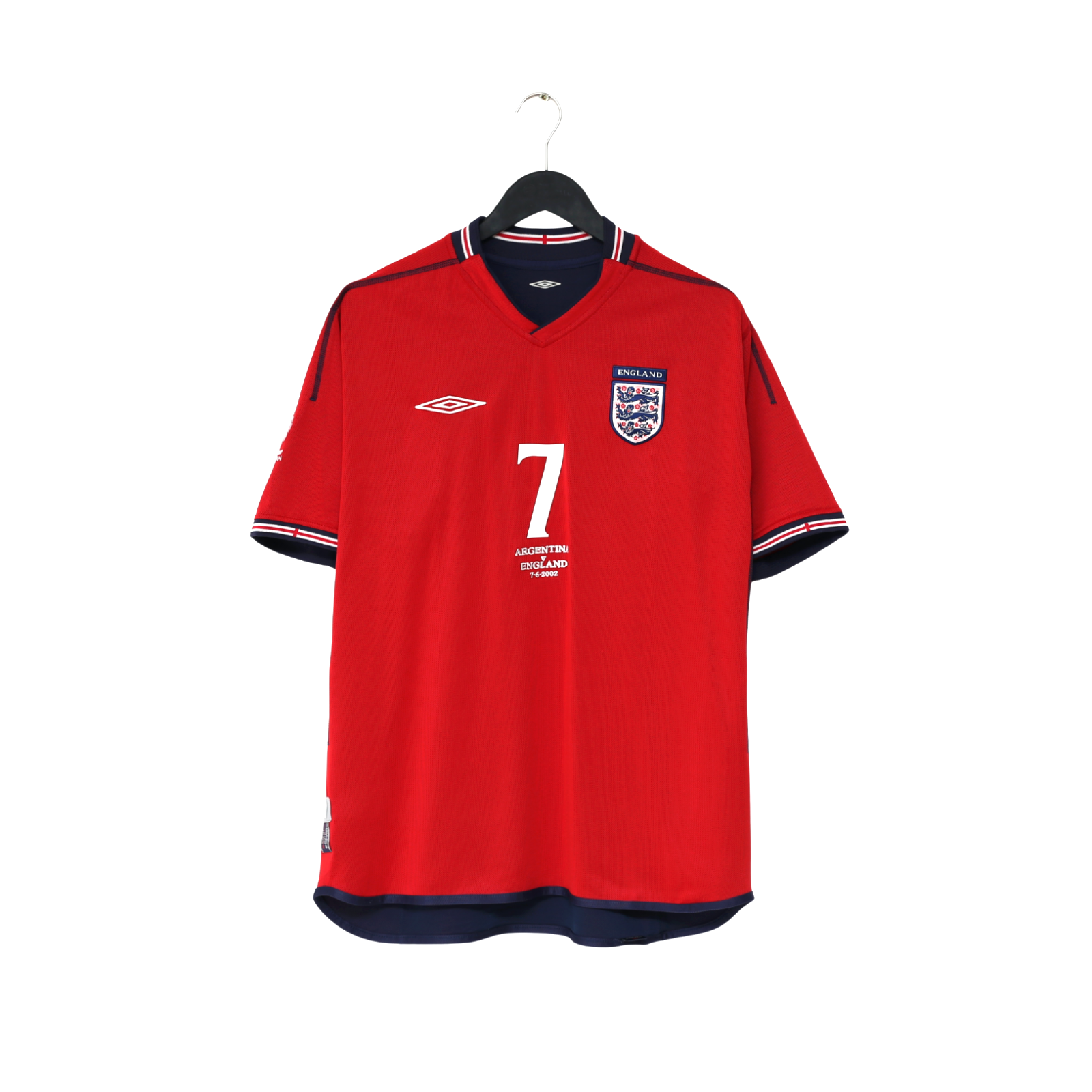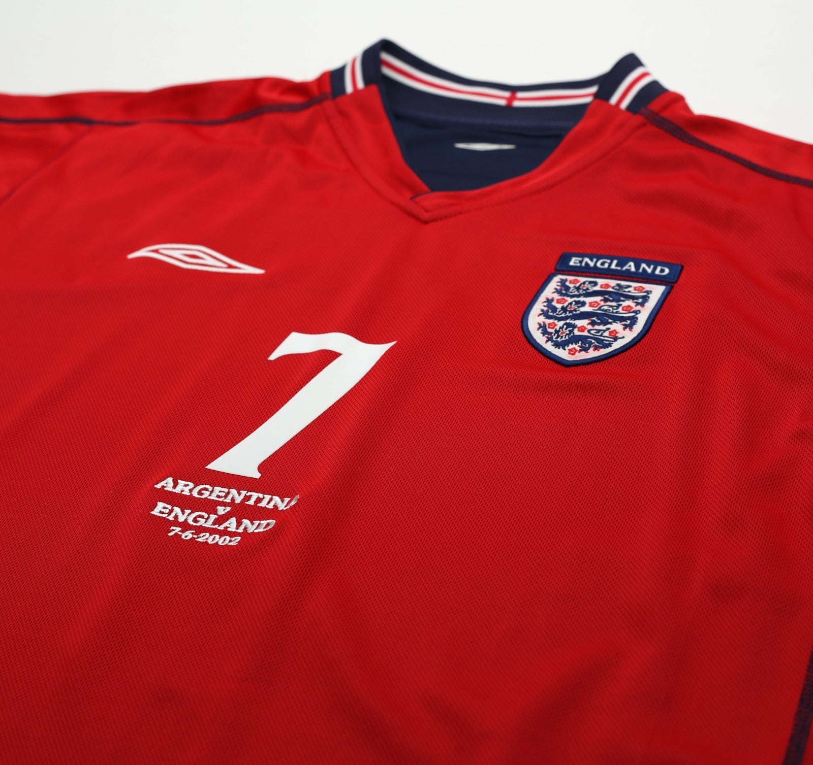 FEATURES - Official flock print for England legend David Beckham #7 and official Argentina match and Tournament embroidery details