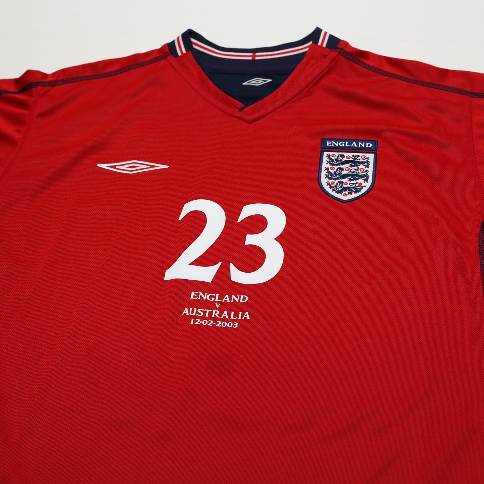 FEATURES - Official flock print for young Everton wonderkid Wayne Rooney #23. Official match detail worn on the player shirts for Rooney's debut game v Australia (International Friendly) 12/02/2003